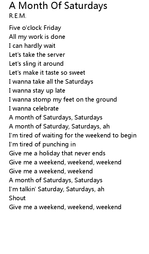 A month of Saturday, Saturdays, ah |