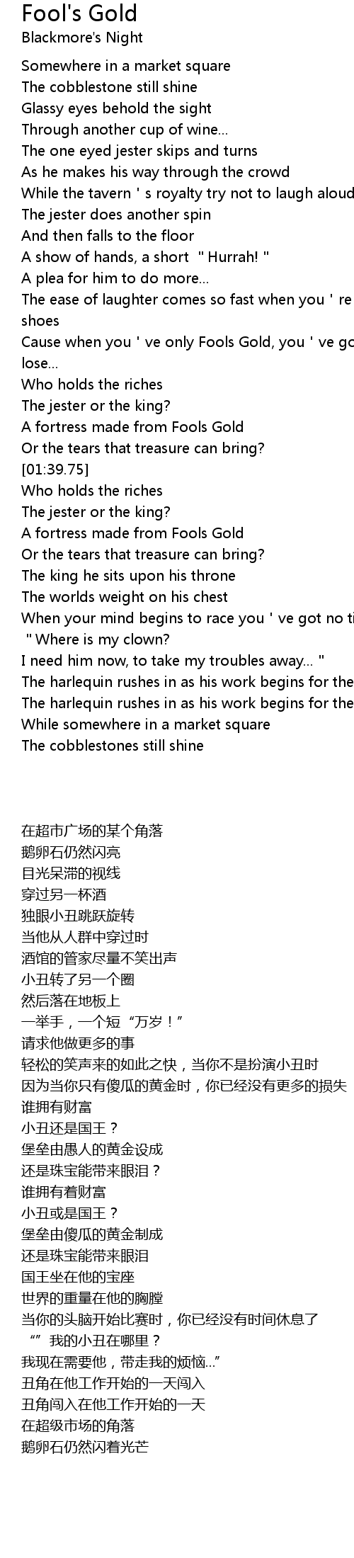 | [01:10.83] | Cause when you've only Fools Gold, you've got nothing more to lose... |