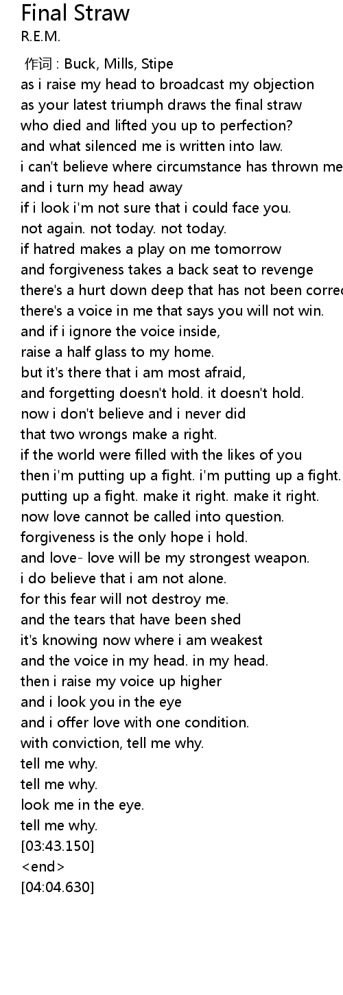| [00:00.00] | zuò cí : Buck, Mills, Stipe |