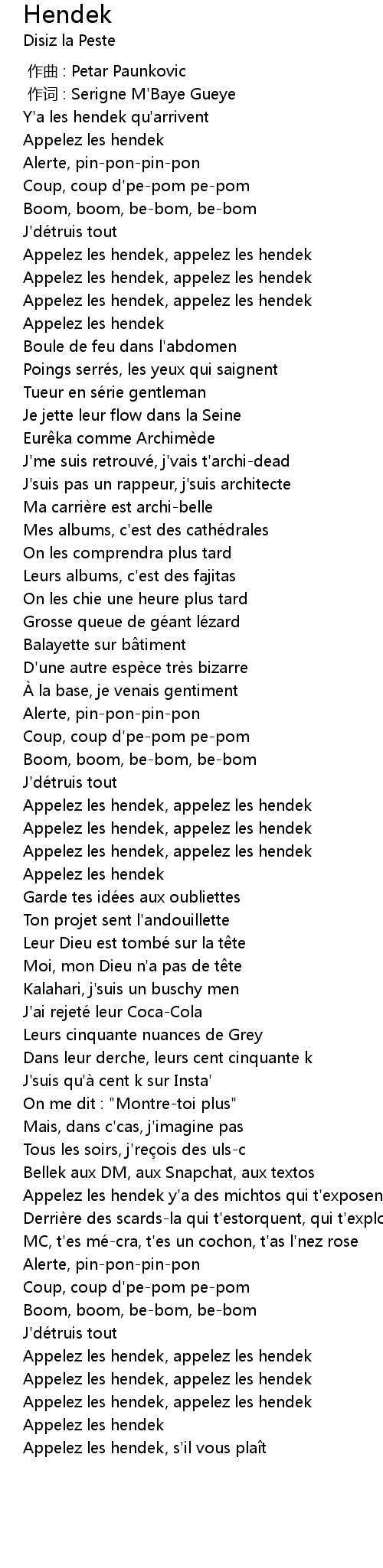 | [01:52.46] | Appelez les hendek, appelez les hendek |