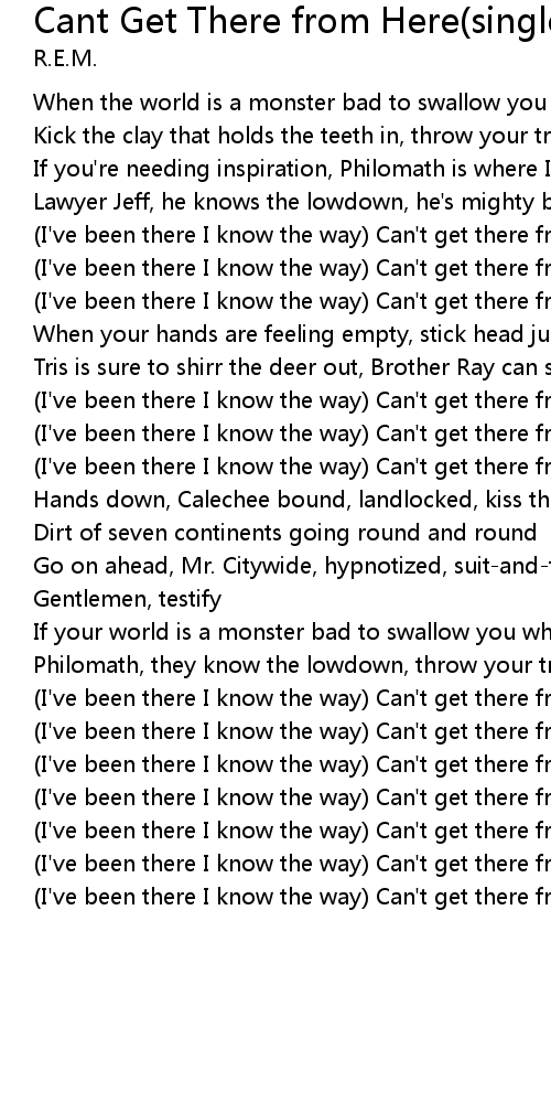 Cant Get There from Here(single version) Lyrics