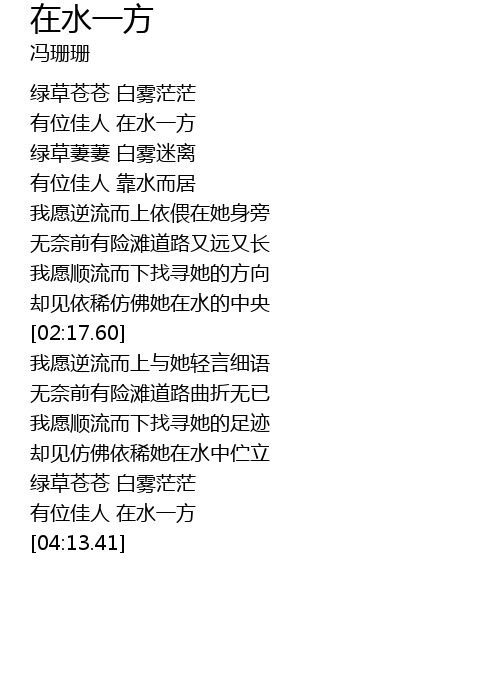| [00:41.05] | yǒu wèi jiā rén zài shuǐ yī fāng |