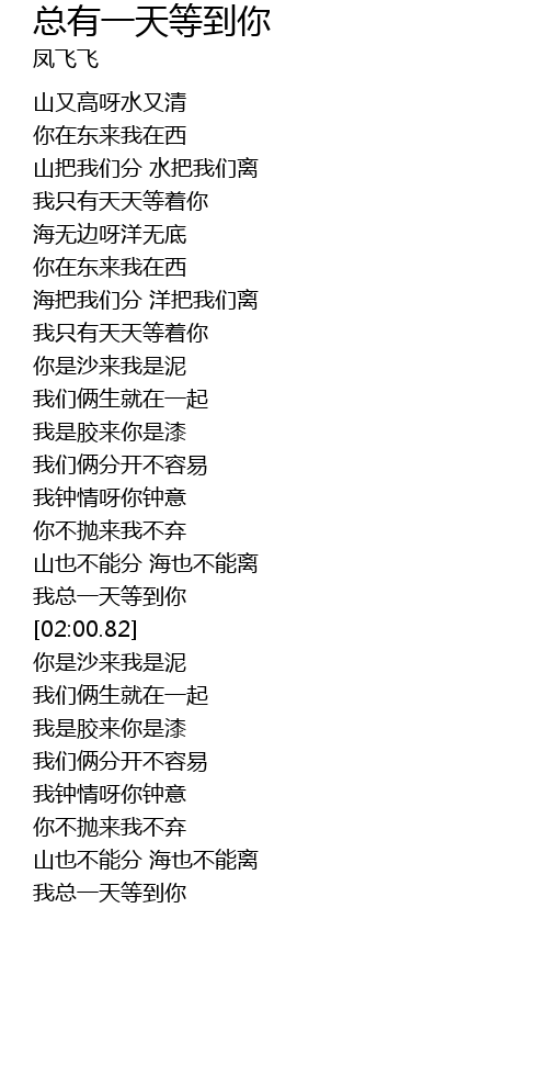 | [01:54.08] | wǒ zǒng yì tiān děng dào nǐ |