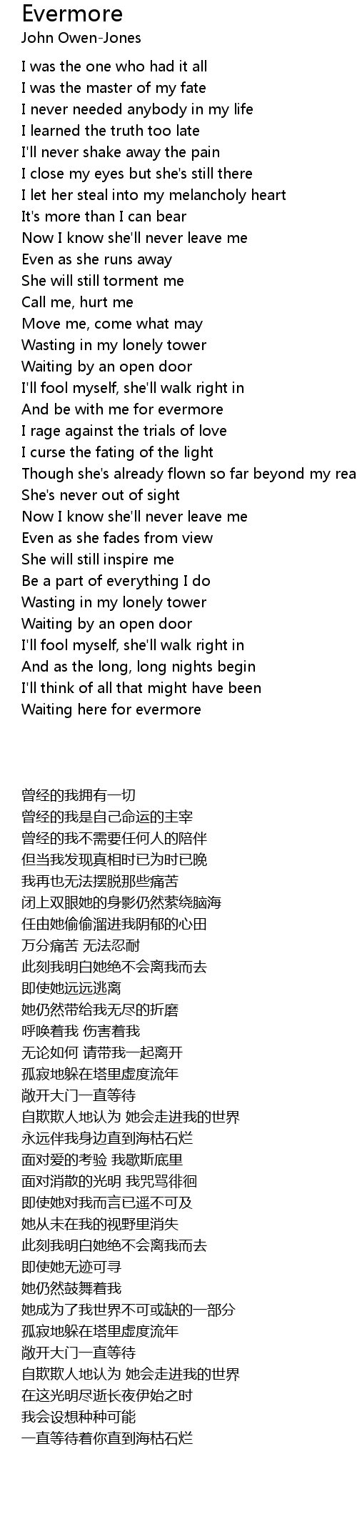 Waiting here for evermore |