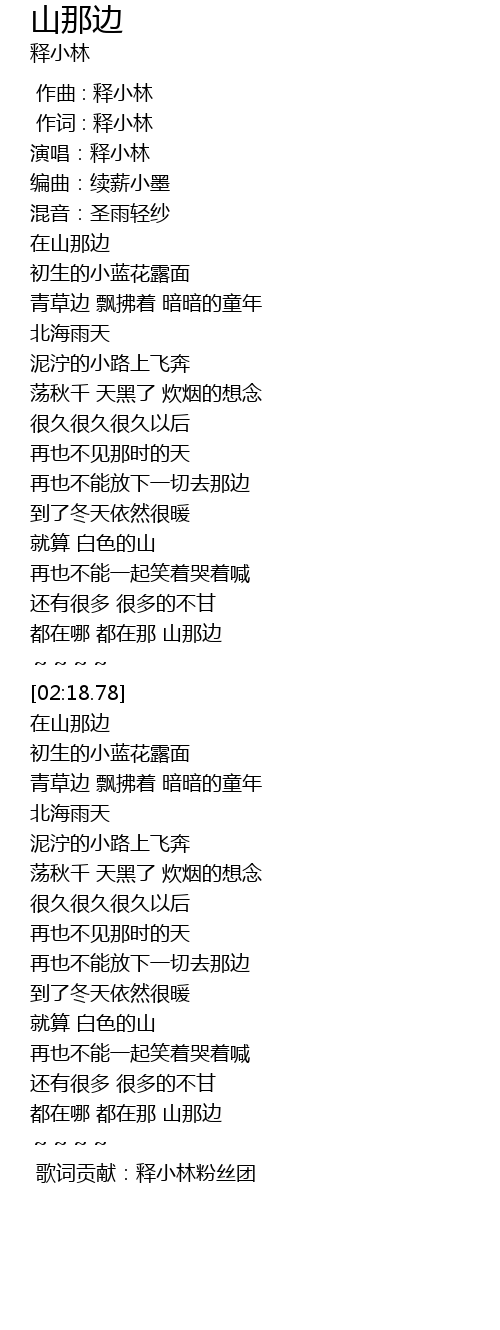 | [04:33.18] | 歌词贡献:释小林粉丝团 |
