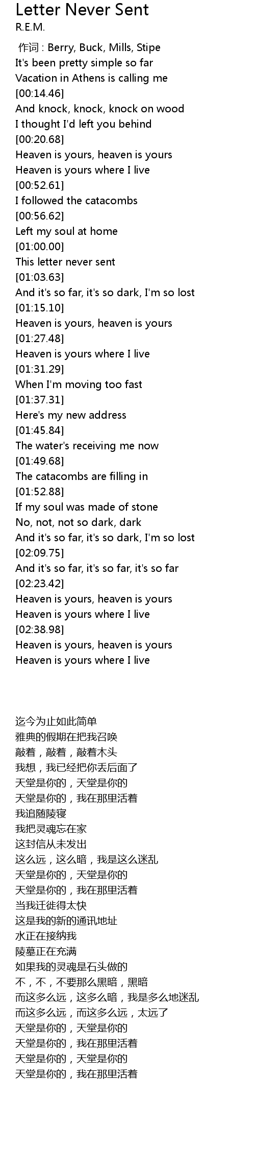 | [00:00.00] | zuò cí : Berry, Buck, Mills, Stipe |