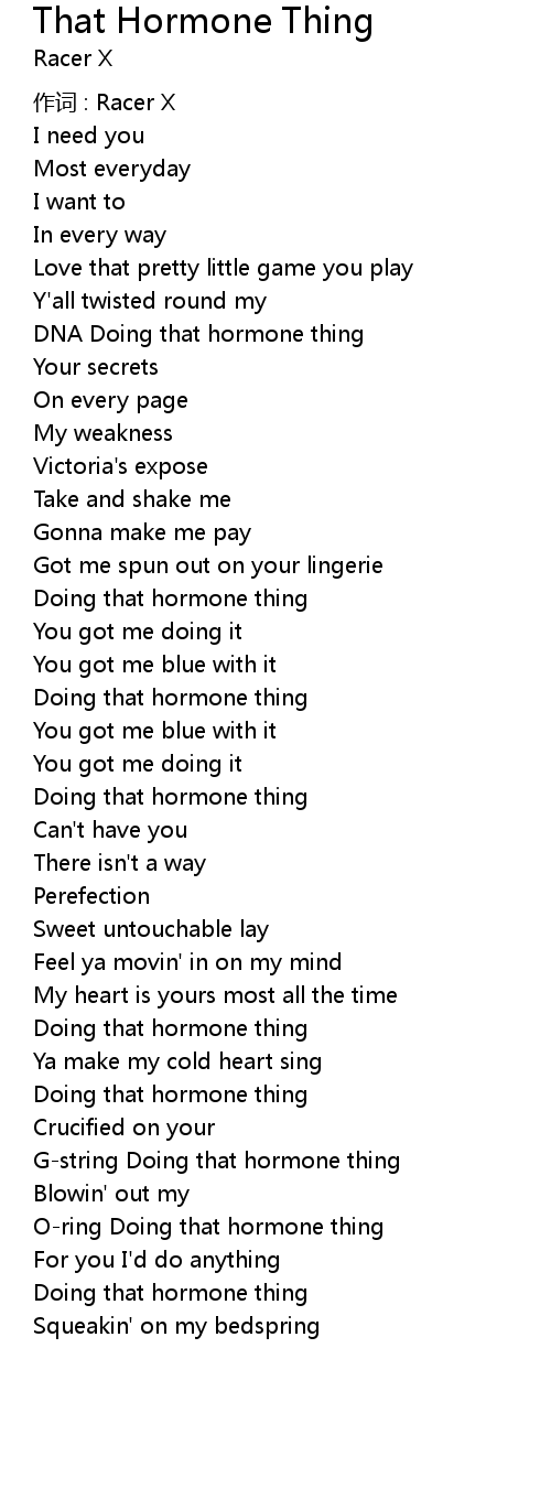| Song | That Hormone Thing |