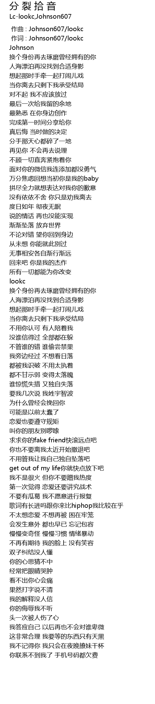 | [01:56.952] | 求求你的fake friend快滚远点吧 |