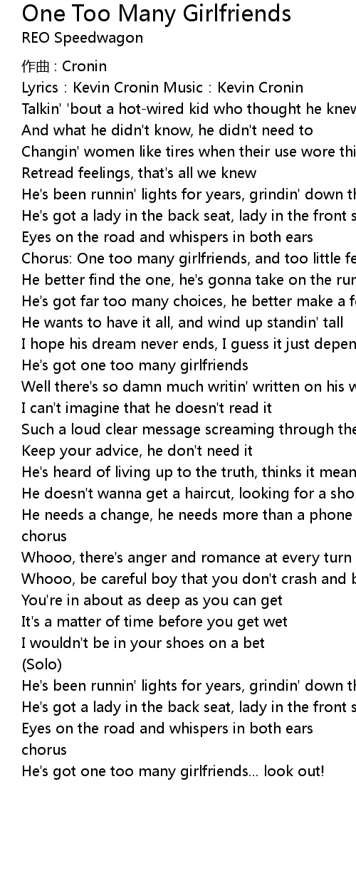 | Chorus: One too many girlfriends, and too little feeling left | |