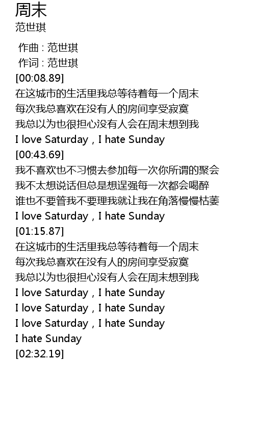 | [02:12.65] | I love Saturday,I hate Sunday |