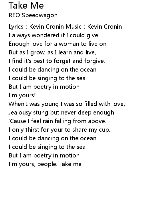 | Lyrics:Kevin Cronin Music:Kevin Cronin | |