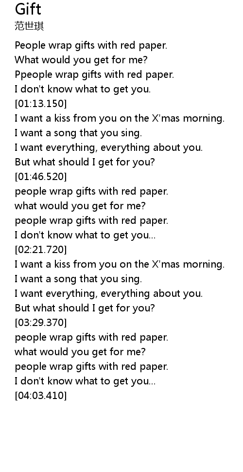 | [00:57.190] | Ppeople wrap gifts with red paper. |
