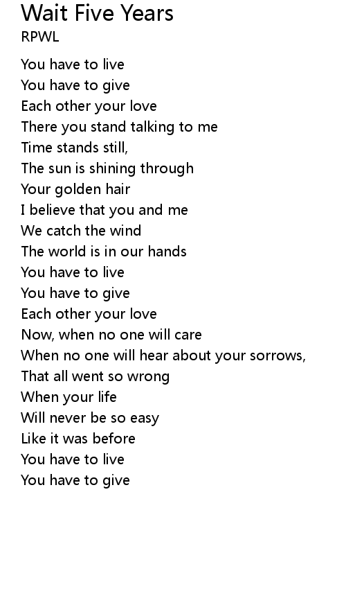 | Song | Wait Five Years |