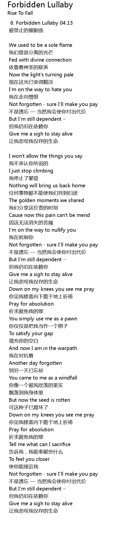 | Song | Forbidden Lullaby |