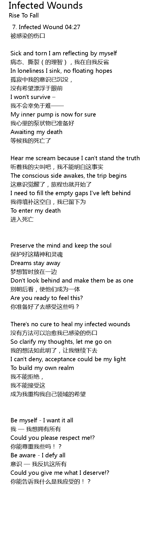| There' s no cure to heal my infected wounds | |
