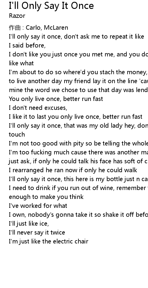 | I' ll only say it once, don' t ask me to repeat it like | |