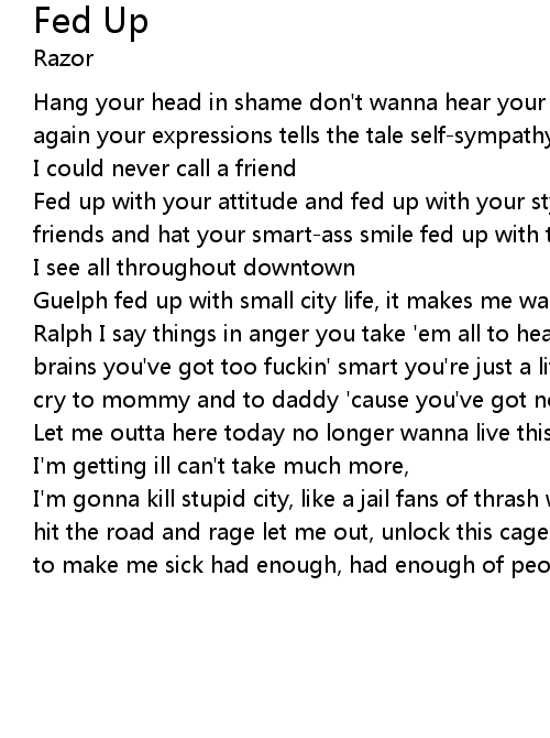 Fed up with your attitude and fed up with your style fed up with your butthead friends and hat your smart-ass smile fed up with the goofs |