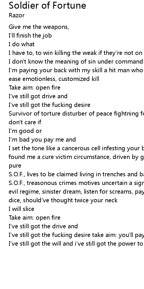 S.O.F., lives to be claimed living in trenches and barrens untamed |