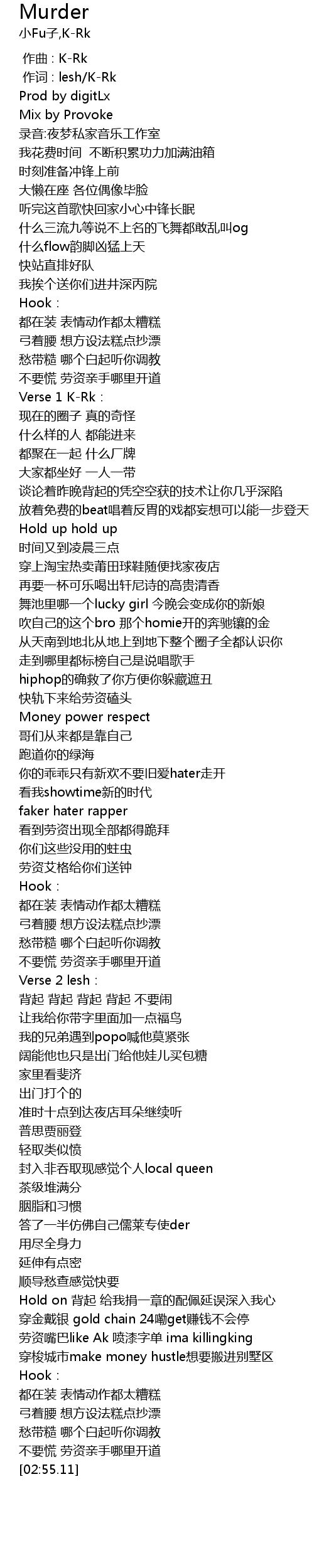 | [02:35.48] | 劳资嘴巴like Ak 喷漆字单 ima killingking |