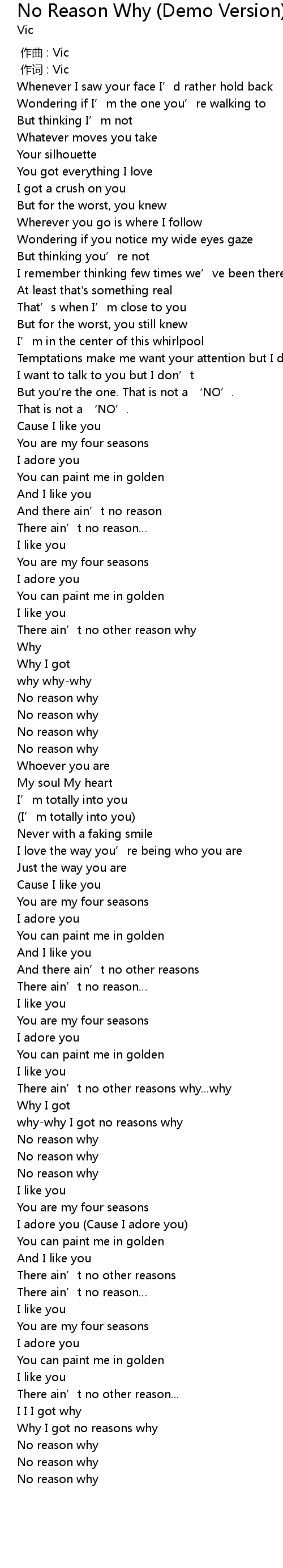 | Song | No Reason Why (Demo Version) |