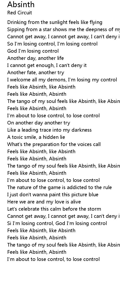 The tango of my soul feels like Absinth, like Absinth |