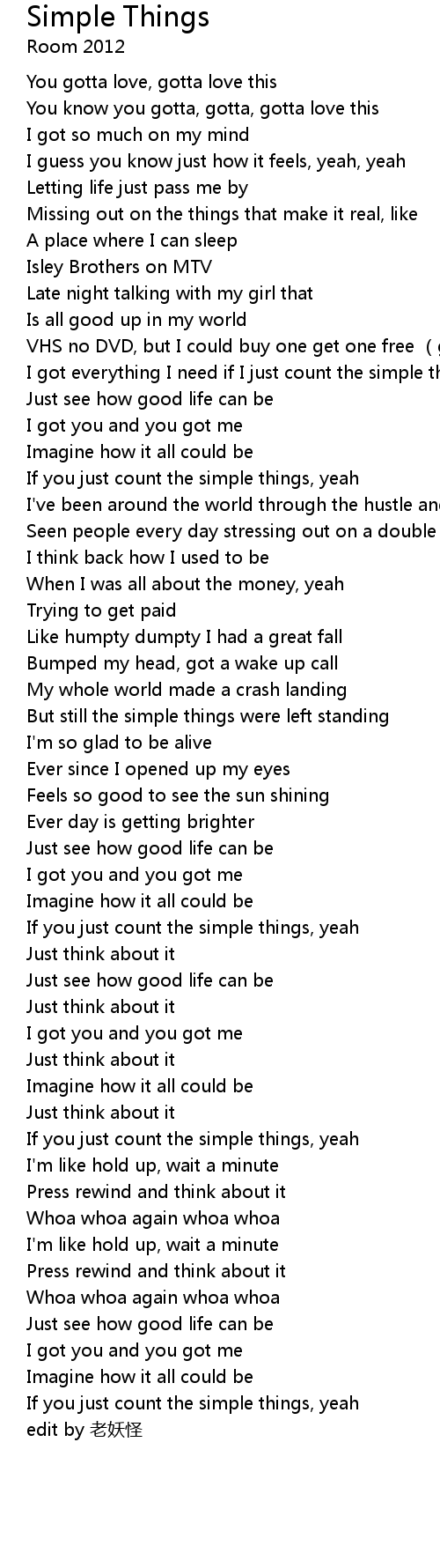 | [00:47.49] | I got everything I need if I just count the simple things, yeah |