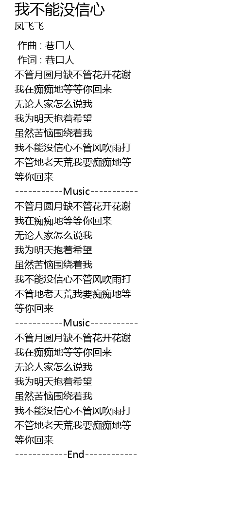 | [00:41.18] | 我不能没信心不管风吹雨打 |
