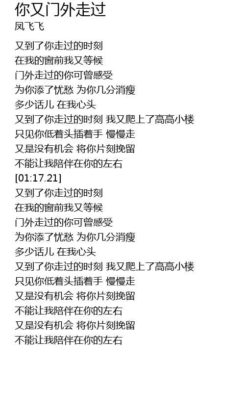 | [00:17.42] | yòu dào le nǐ zǒu guò de shí kè |