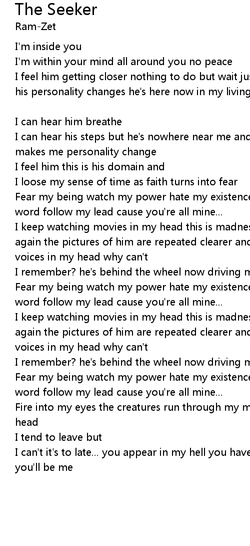 | I feel him getting closer nothing to do but wait just a helpless spectator as his personality changes he's here now in my living nightmare and he's chasing me | |