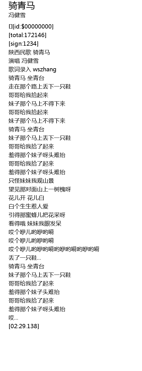 | [00:00.242] | 陕西民歌 骑青马 |