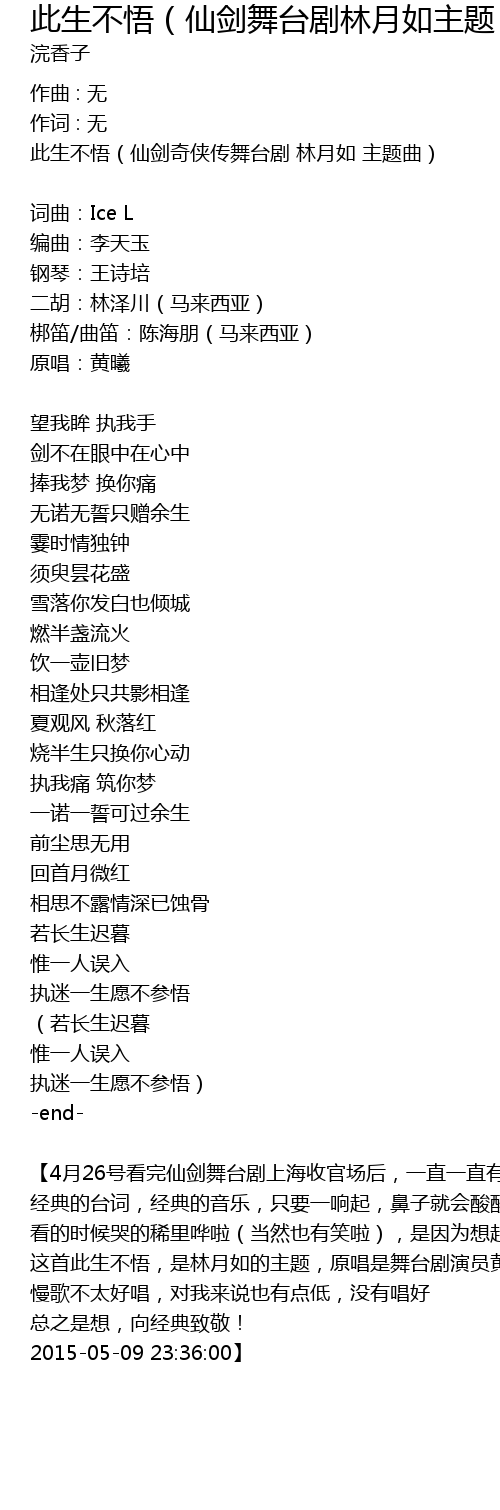 | 此生不悟(仙剑奇侠传舞台剧 林月如 主题曲) | |
