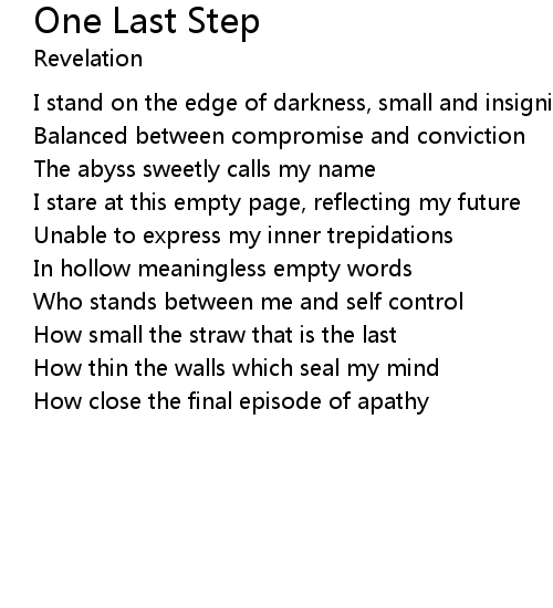 | I stand on the edge of darkness, small and insignificant | |