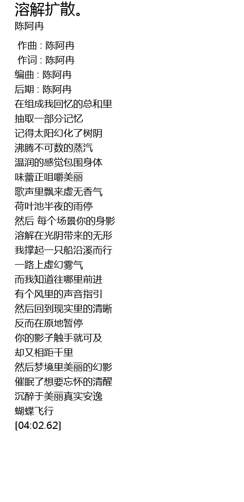 | [00:00.24] | 编曲 : 陈阿冉 |
