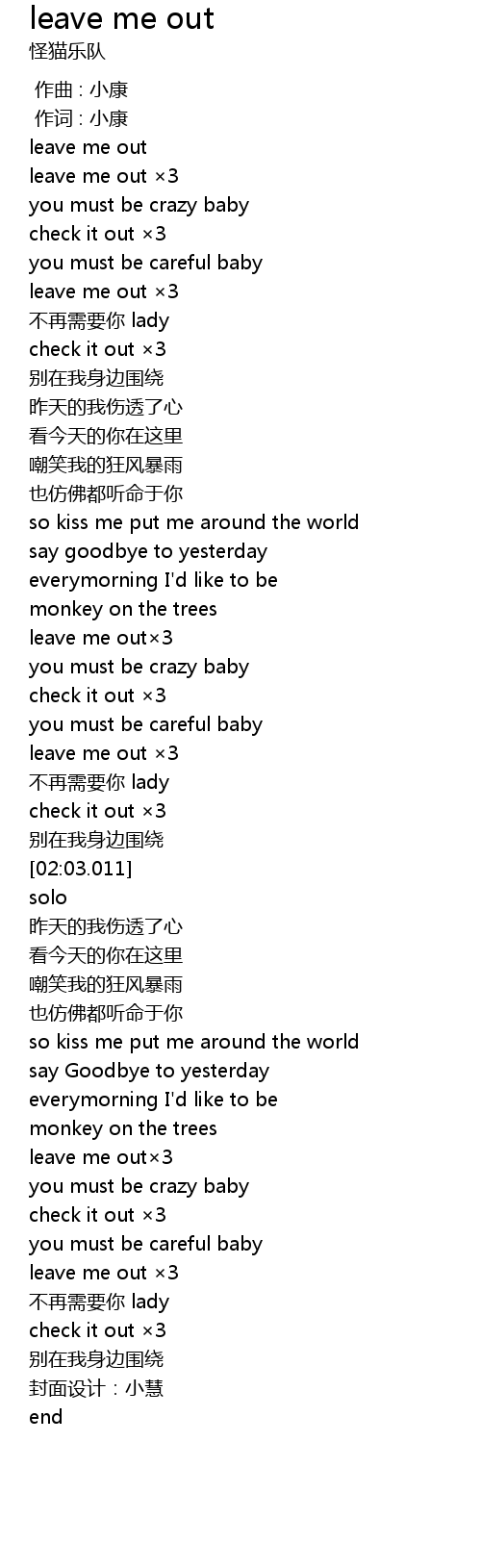| [02:41.571] | chao xiao wo de kuang feng bao yu |