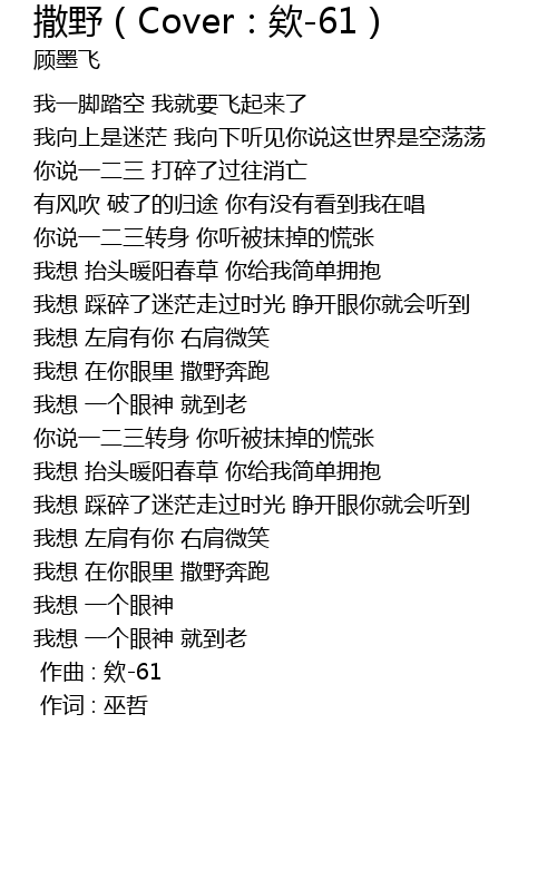 | [01:08] | 我想 踩碎了迷茫走过时光 睁开眼你就会听到 |