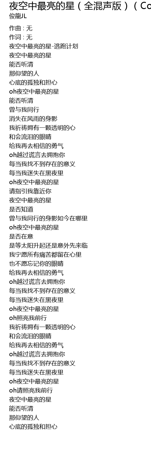 | Song | 夜空中最亮的星(全混声版)(Cover 逃跑计划) |