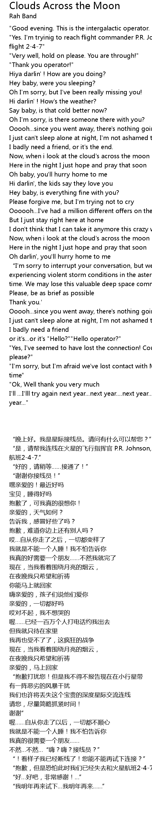 | [03:34.00] | " I' m sorry, but I' m afraid we' ve lost contact with Mars 247 at this time" |