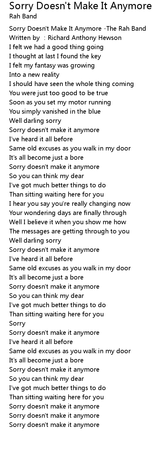 | [00:00.459] | Sorry Doesn' t Make It Anymore The Rah Band |