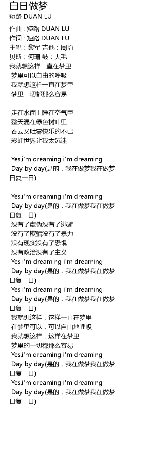 | Day by day shì de, wǒ zài zuò mèng wǒ zài zuò mèng | |
