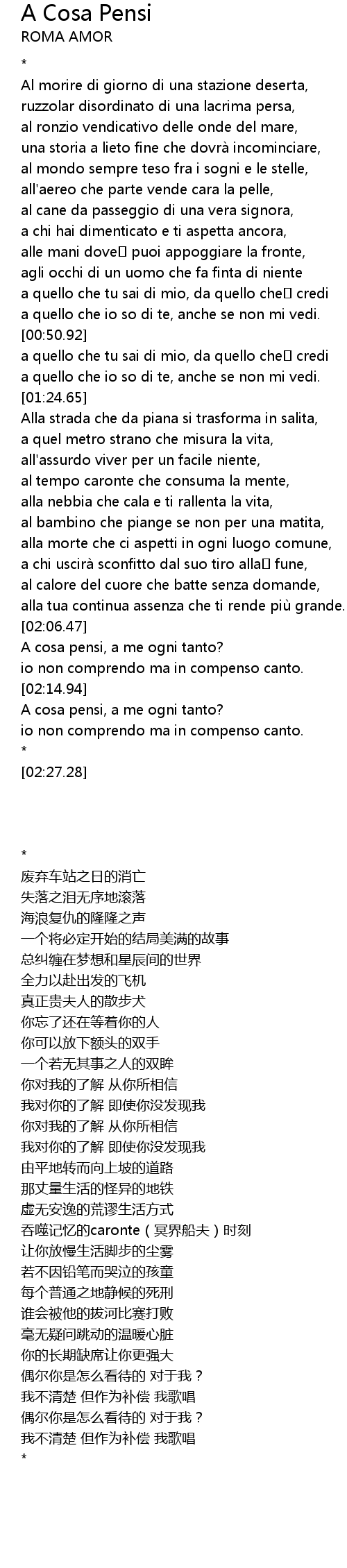 | [02:15.94] | A cosa pensi, a me ogni tanto? |