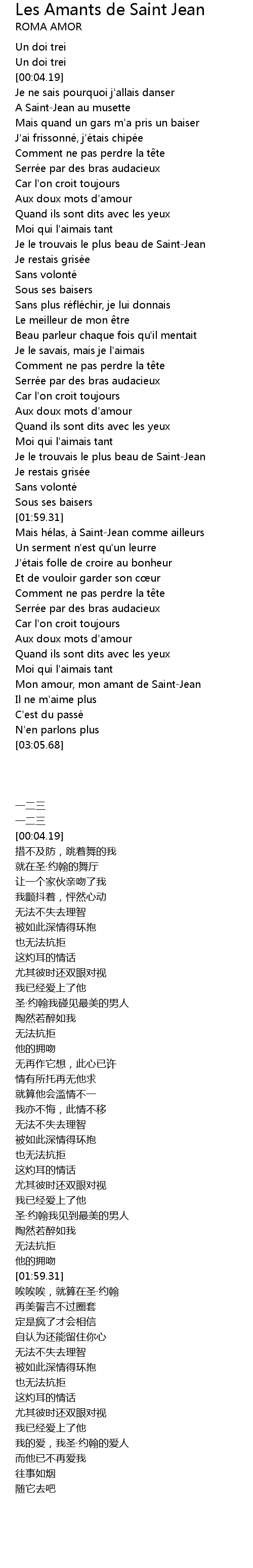 | [02:52.84] | Mon amour, mon amant de Saint-Jean |
