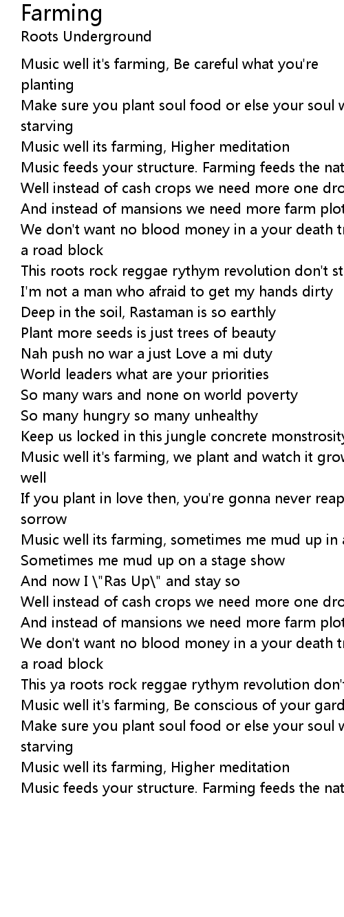 Music feeds your structure. Farming feeds the nation |