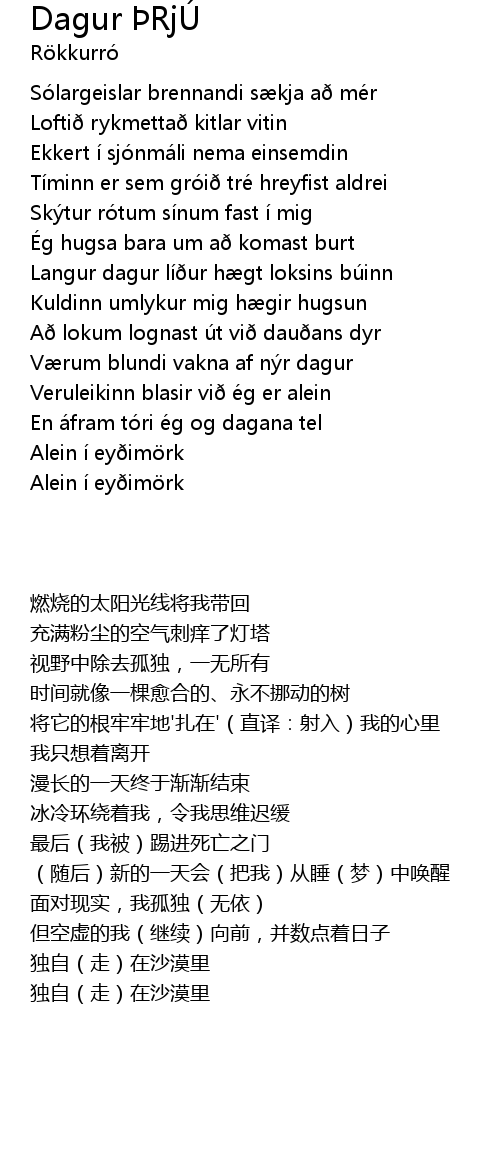 | [03:22.29] | V rum blundi vakna af n r dagur |