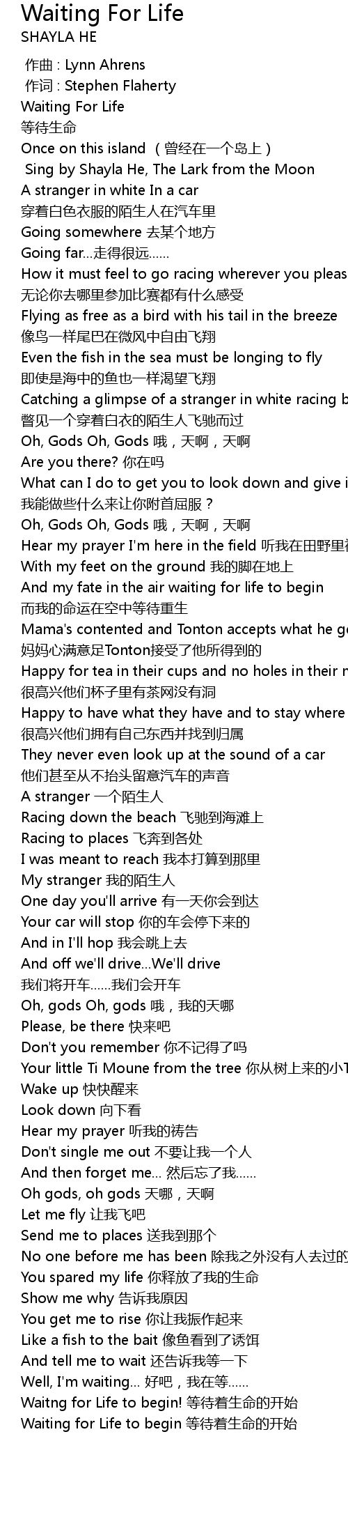 | [03:02.826] | Waitng for Life to begin! deng dai zhe sheng ming de kai shi |