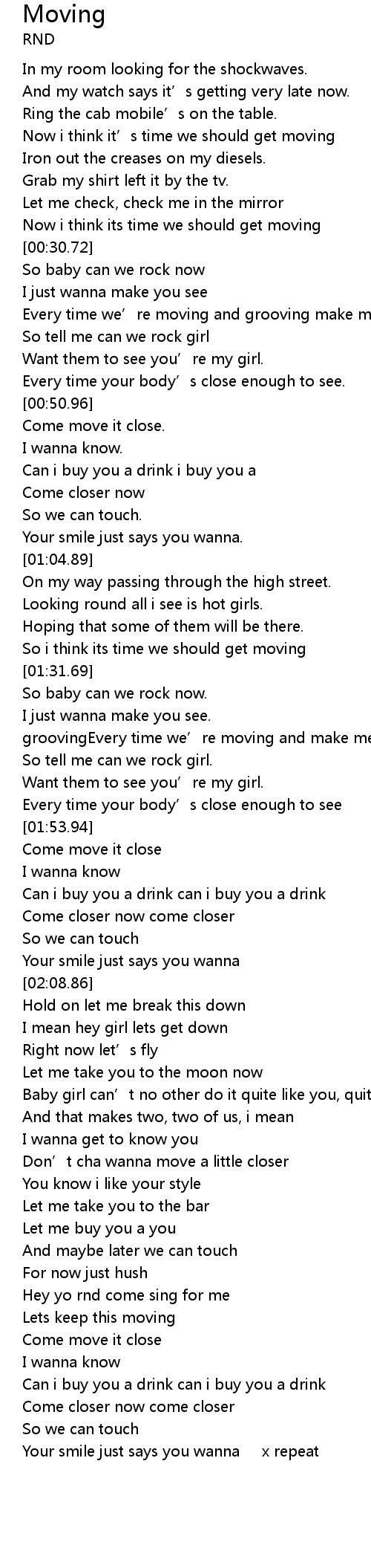 | [02:55.58] | Hey yo rnd come sing for me |