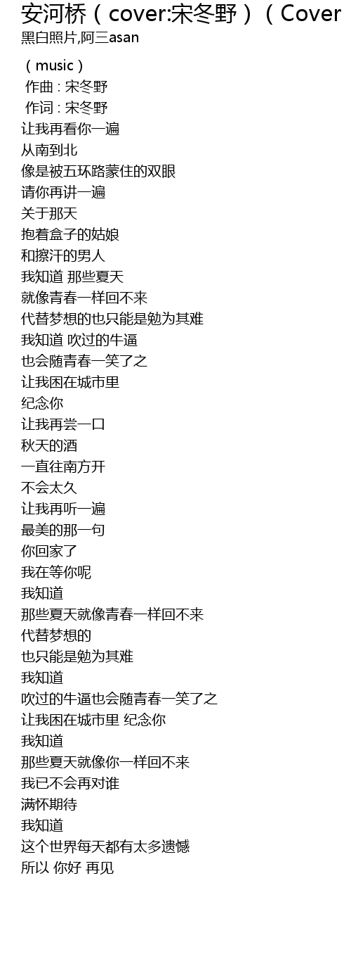| [00:01.000] | 作词 : 宋冬野 |