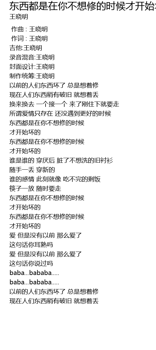 | [01:53.00] | dōng xī dōu shì zài nǐ bù xiǎng xiū de shí hòu |