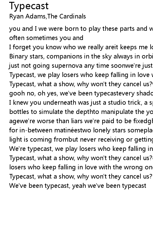 | Typecast, what a show, why won' t they cancel us? we got a million more seasons to gooh no, oh yes, we' ve been typecastevery shadow | |