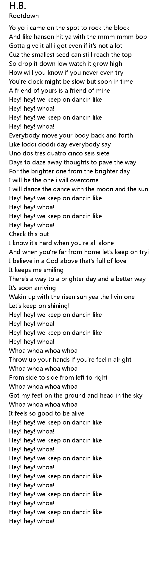 Hey! hey! we keep on dancin like |
