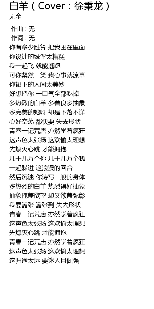 | [01:46.490] | 多热烈的白羊 热烈得好抽象 |